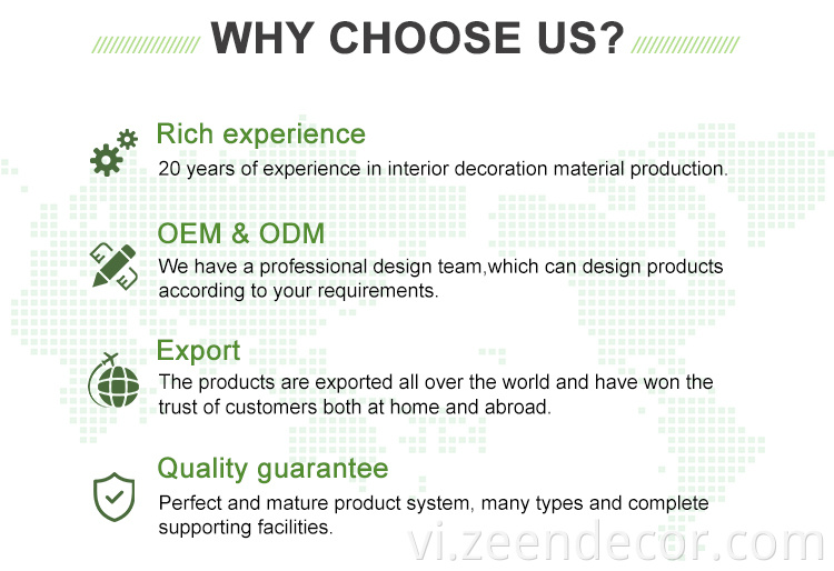 2. 100% non-toxic, non-formaldehyde, environmental friendly 3. Water-proof; termite-proof 4. No cracking, anti-impact with high density 5. Anti-UV, good color fastness 6. No glue, no need to paint and can be painted 7. Easy installation and low maintenance 8. Weather resistant |